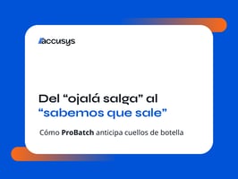 Probatch puede implementarse en pocas semanas con acompañamiento del equipo de Accusys. Incluye etapas de relevamiento, parametrización, pruebas y puesta en producción, minimizando riesgos y acelerando el retorno.
